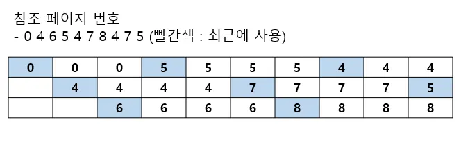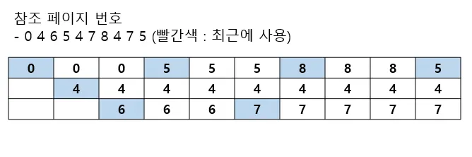 페이지 부재가 발생했을 경우 각 페이지 호출순서에 따라 사용하지 않을 페이지를 교체하는 기법이다.