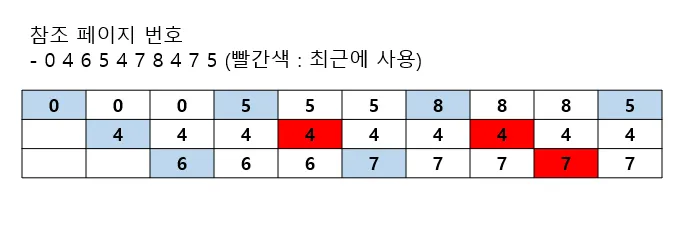 캐시(Cache)에서 메로리를 다루기 위한 알고리즘으로써, 페이지 부재가 발생했을 경우 최근 가장 오랫동안 사용되지 않은 페이지를 제거하는 알고리즘이다.