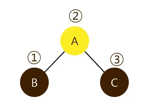 왼쪽 하위 노드부터 오른쪽 하뤼 노드 방향으로 방문
