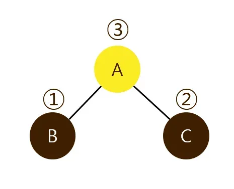 잎 노드를 모두 탐색하고 루트 노드를 방문